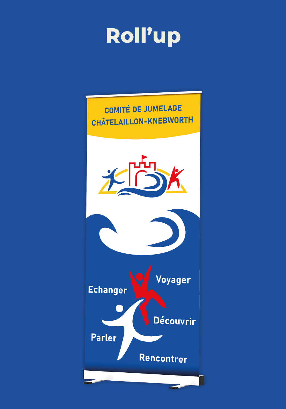 Pour le Comité de Jumelage de Châtelaillon–Knebworth, nous avons réalisé une identité graphique complète ainsi que plusieurs supports print afin de moderniser leur communication et de renforcer leur visibilité lors des événements. Le projet a débuté avec la création d’un nouveau logo, décliné en plusieurs versions pour s’adapter aux différents supports et mettre en valeur les liens culturels entre la France et l’Angleterre. Nous avons ensuite conçu des outils de communication visuelle tels que des beachflags, des roll’ups et des banderoles, afin d’assurer une présence impactante sur le terrain. L’objectif de cette collaboration était également de donner une image plus dynamique et accessible, capable d’attirer un public plus jeune tout en transmettant les valeurs d’échange, de découverte et de partage portées par le comité.